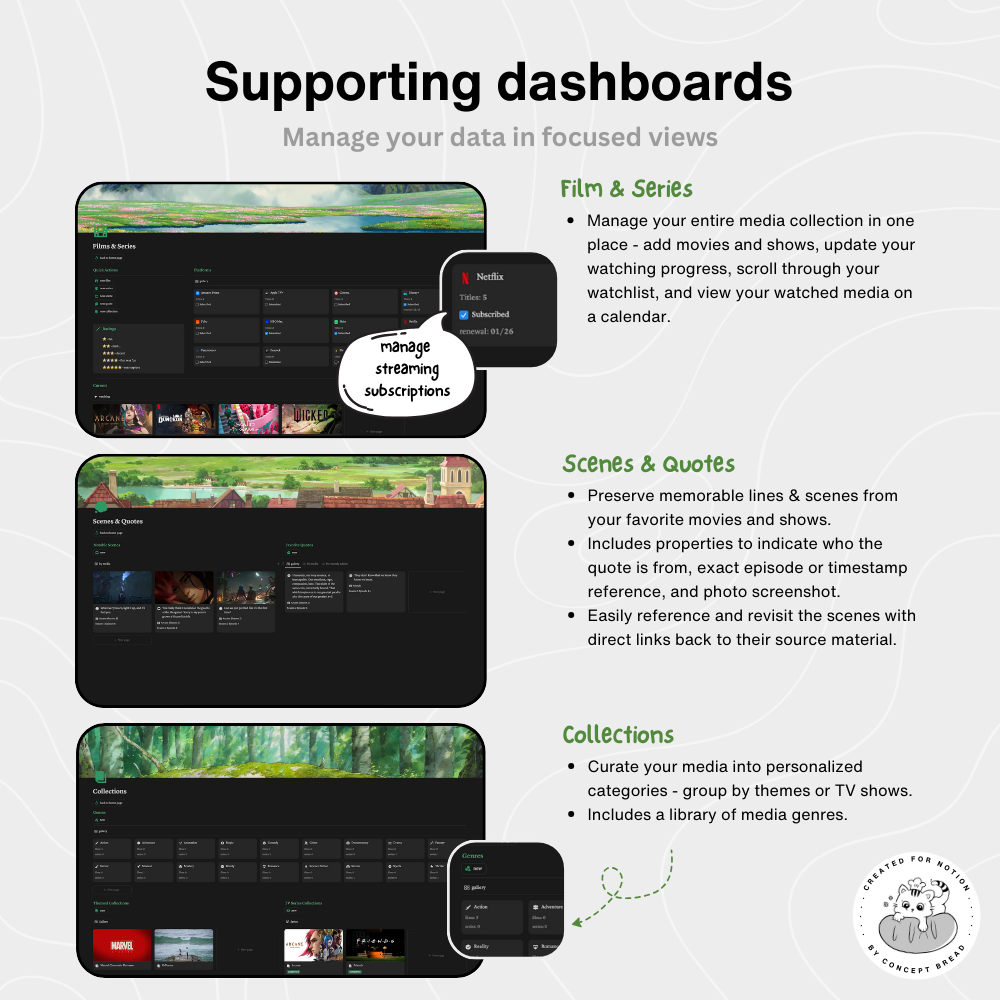 ⭐ Maintain detailed records of all your films and series with interconnected databases and flexible views. Track and maintain: